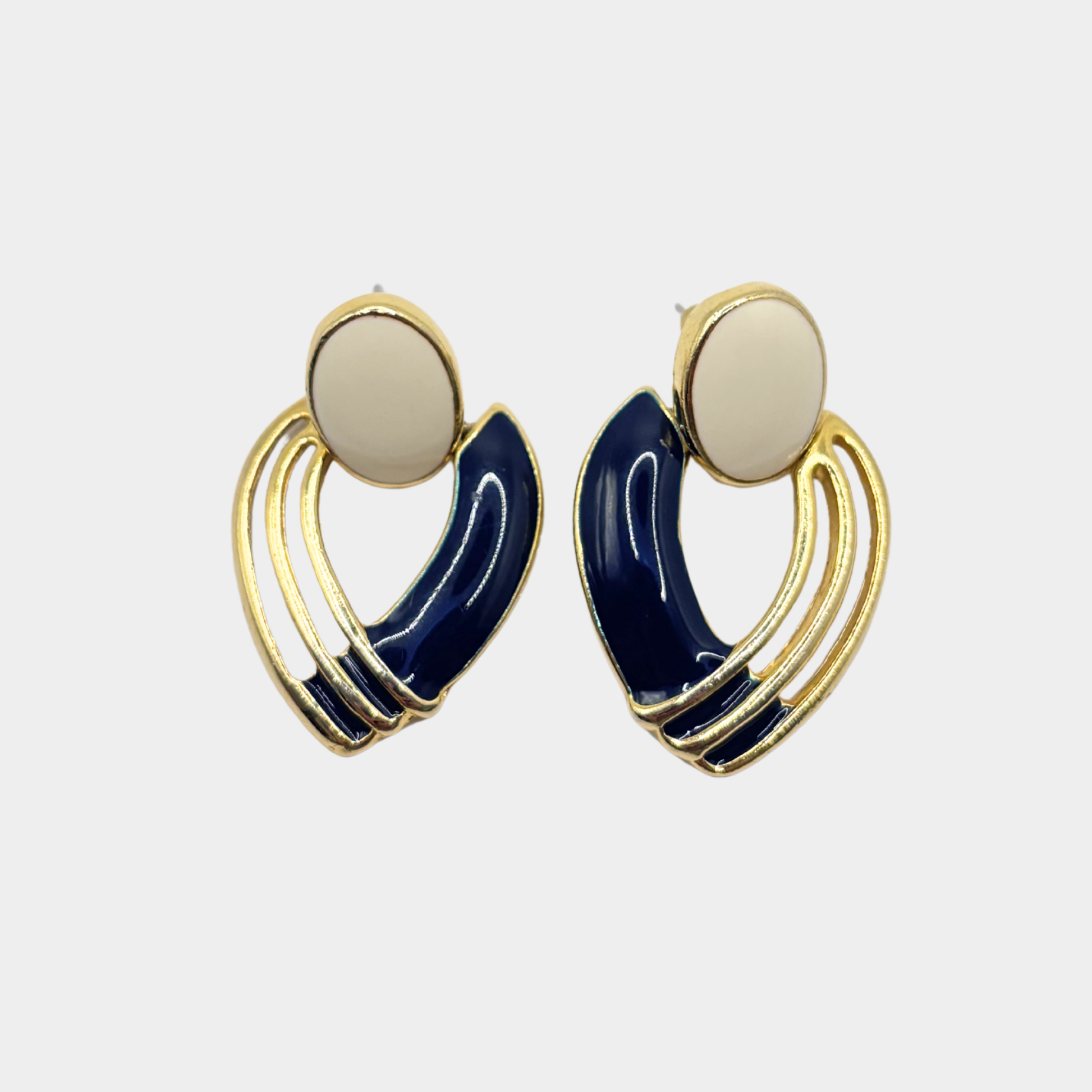 A sculptural composition of deep navy enamel set within a polished gold-tone frame. The curved silhouette offers a refined balance of structure and fluidity, while the smooth enamel surface provides a luminous finish.